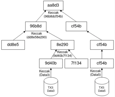 The Merkle root is created by hashing data in the same way as seen above. The hashes of the data are then paired up and combined or concatenated, then they are rehashed in order to create a new hash of the paired data. This step is then repeated until there is a single hash which is a combination of all of all of the inputted providing a fingerprint of all of the data in a single hash function in a hierarchical set of data. In order to determine if Data 2 is apart of the Merkle tree, we would require Hash 1, and Hash 34 only and not the other hashes. We would hash Data one to produce Hash 1, then concatenate it with Hash 2 and rehash, we would then take this Hash we have created (Hash 12) and combine and rehash with the provided Hash 34 and if the resulting hash is the same as the provided Merkle root hash, we could then be certain that Data 2 is in fact apart of this Merkle tree function, if a different root function is obtained, then we will know that Data 2 is in fact not apart of this Merkle tree