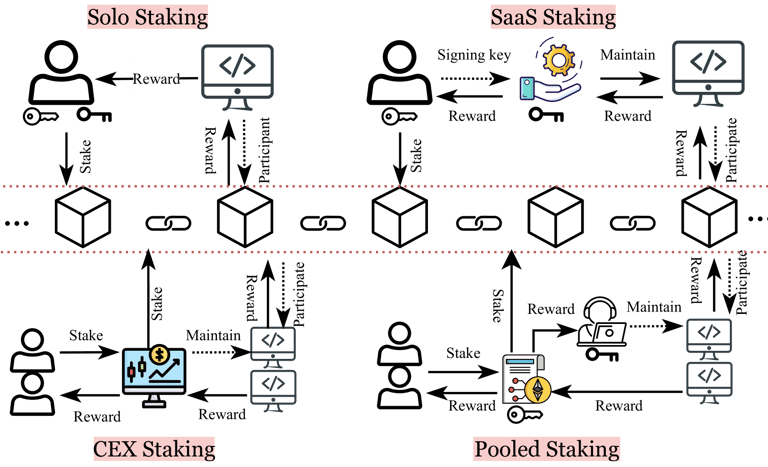 Explore Ethereum's Proof-of-Stake (PoS) consensus mechanism, including solo staking, staking pools, and exchange staking. Learn about their advantages, disadvantages, and the impact on Ethereum's security and tokenomics. Ideal for cryptocurrency investors and DeFi enthusiasts.